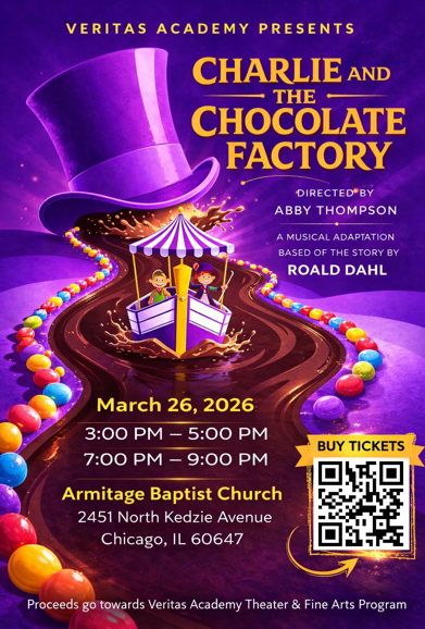 Abby Thompson and Veritas Academy present Charlie and the Chocolate Factory, directed by Abby Thompson.